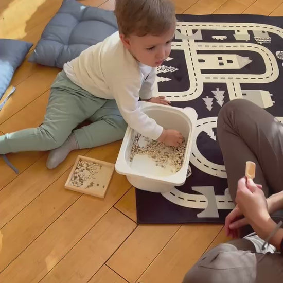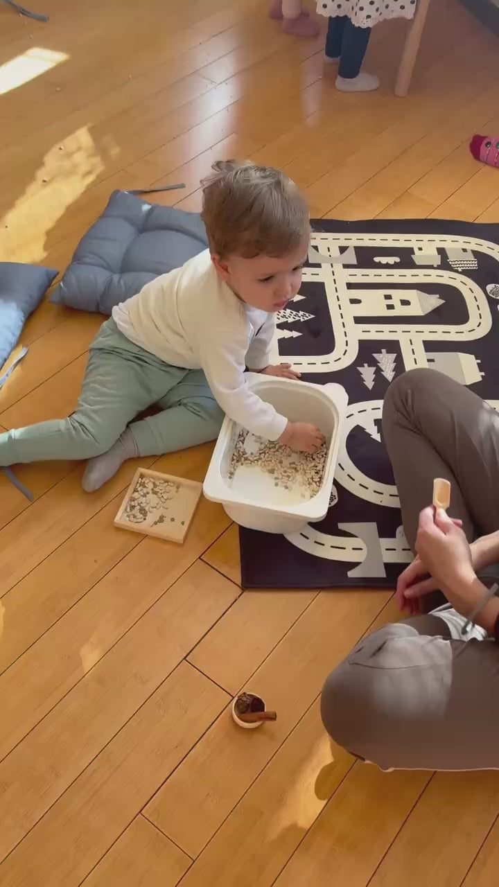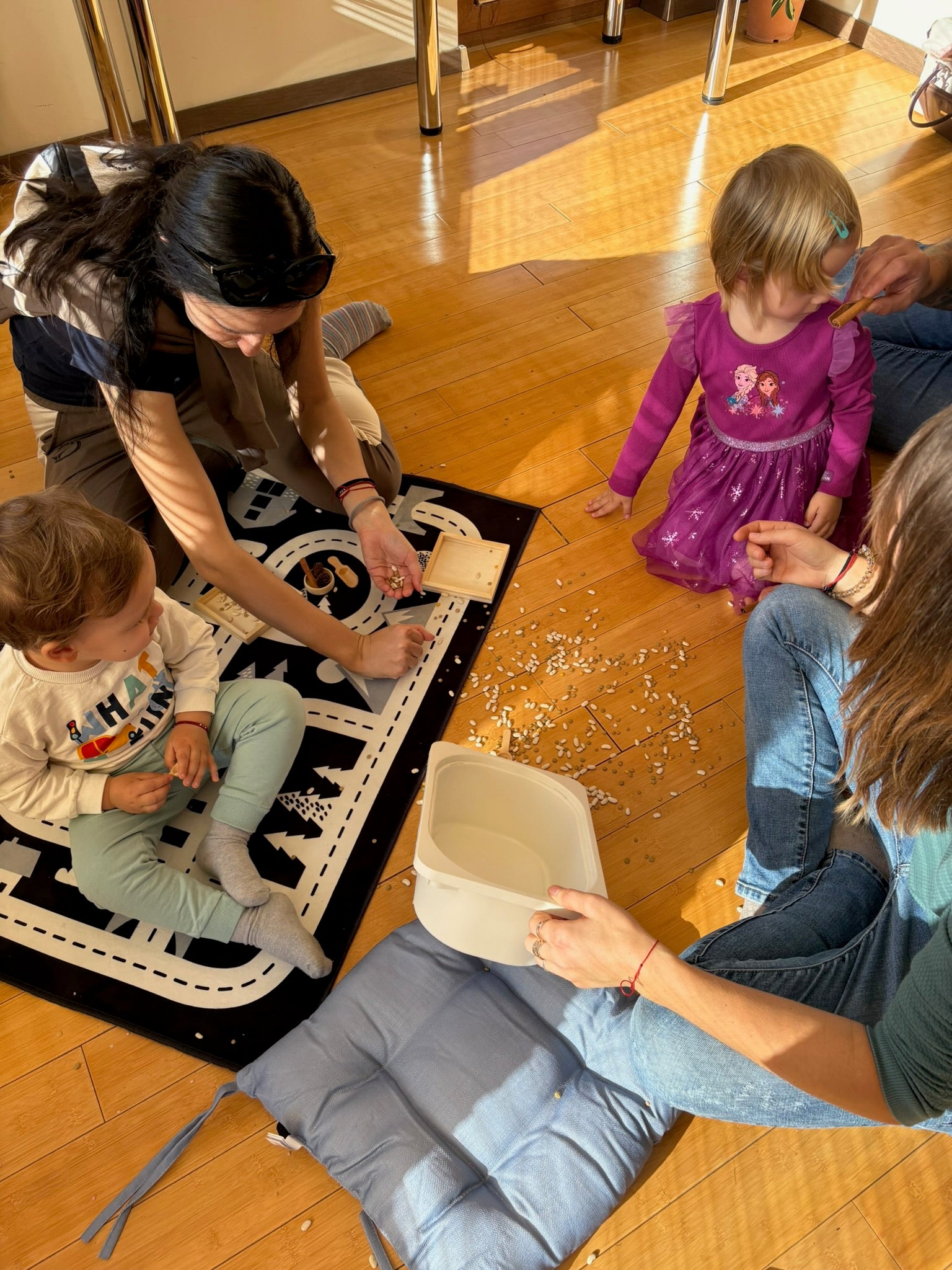 Чрез практически занимания децата изследват текстури, форми и въображение в спокойна, игрива и насочвана среда.